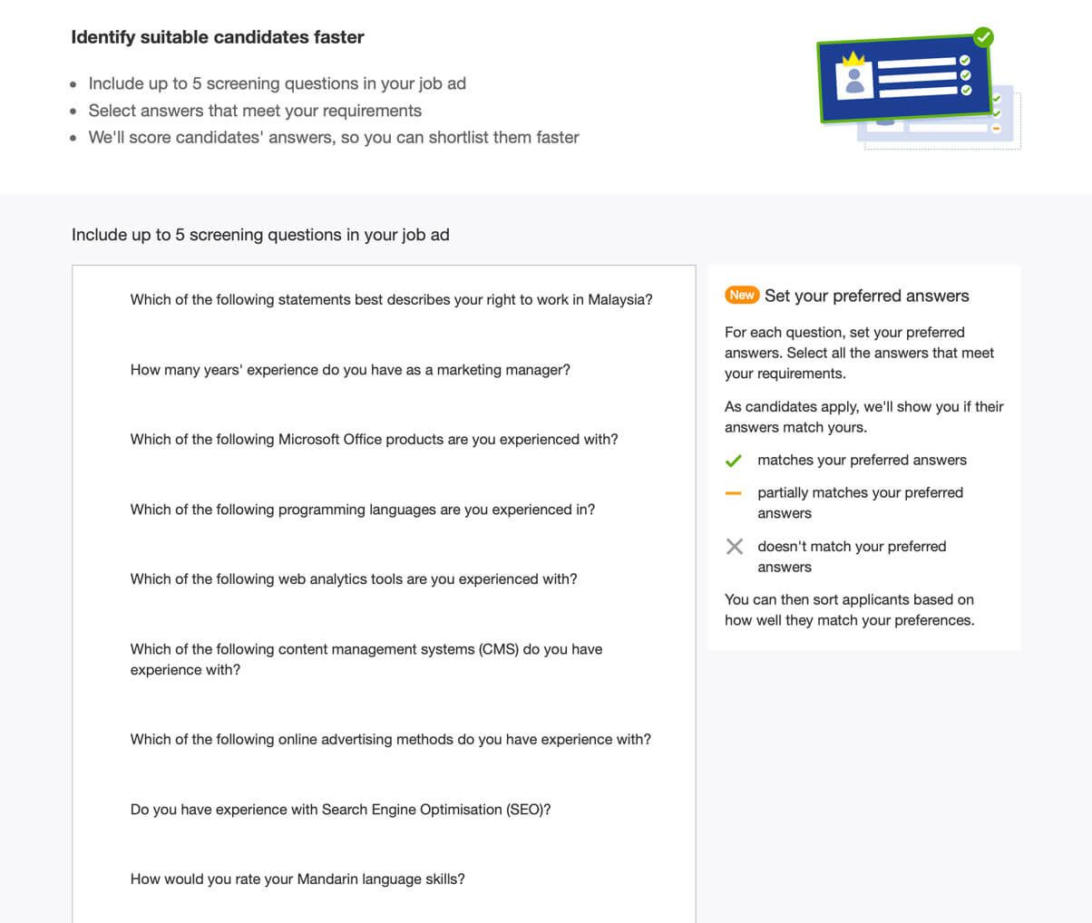 Candidates’ responses to screening questions will provide hirers with insights to help them make better hiring decisions.