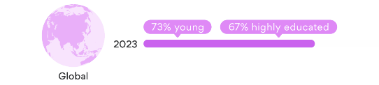73% are willing to move abroad with a majority below 30 years old and hold Doctorates, PhDs, Masters/Diploma and Bachelor's degrees.
