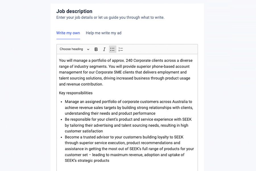 Job Advertisements should adhere to Jobstreet by SEEK terms of use and relevant country policies.