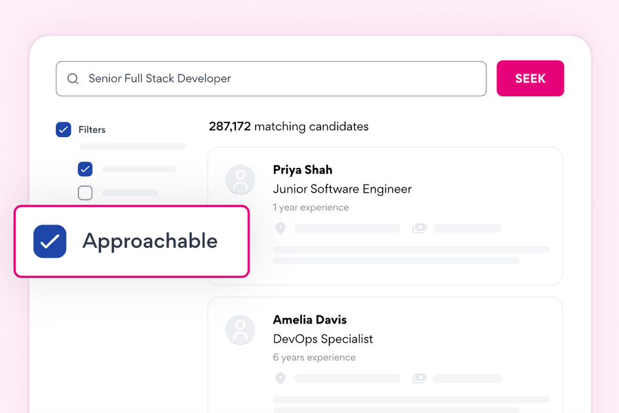 Search by keywords or role title to instantly discover relevant candidates, then easily refine your results with smart filters for industry, company, salary and more. With AI-powered features like similar candidate suggestions - finding the right talent is faster and simpler than ever before.